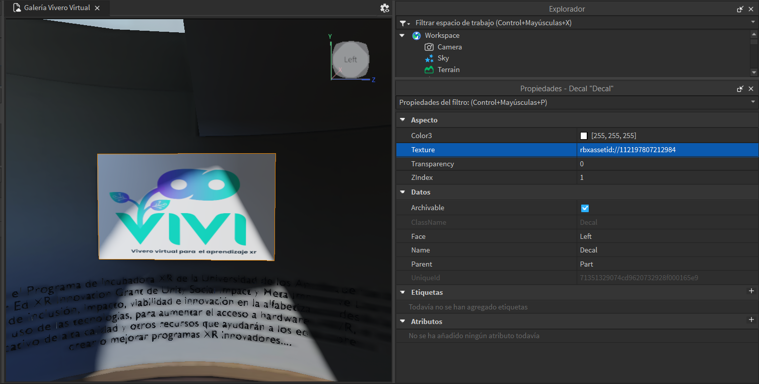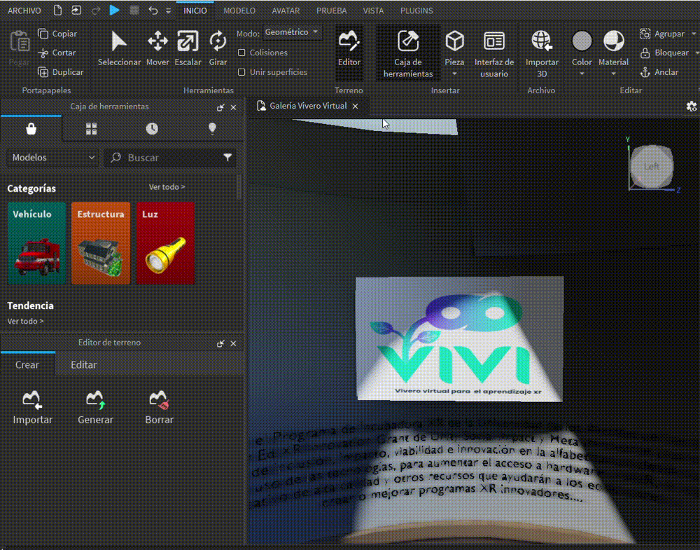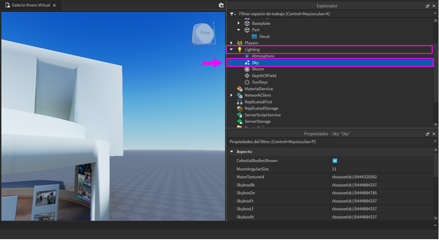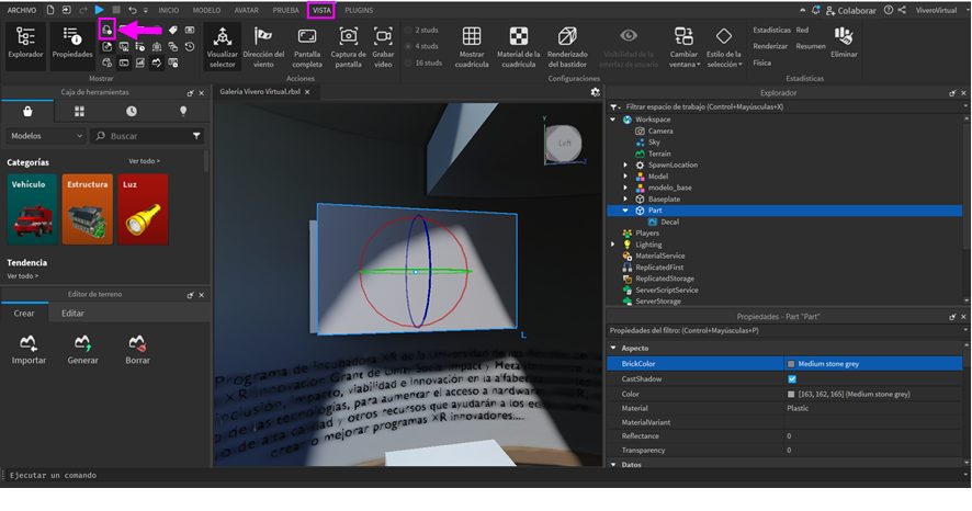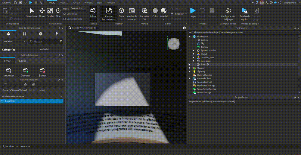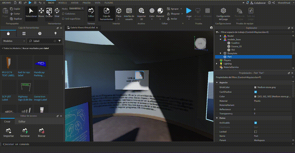 En este codelab, aprenderás a crear una galería virtual inspirada en el Vivero Virtual utilizando Roblox Studio. A lo largo de este ejercicio, importarás elementos como imágenes 2D, objetos 3D, texturas y un skybox (imagen 360°). El resultado final será un escenario interactivo en el que los usuarios podrán explorar tu galería. Aunque trabajaremos con varios elementos, deberás seleccionar al menos uno de ellos para personalizar, pero puedes experimentar con todos si lo deseas.