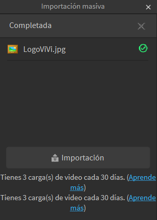 Al hacer esto automáticamente cargará una ventana de importación que nos indicará cuando nuestra imágen ya haya sido cargada exitosamente. Una vez haya cargado podremos cerrarla.