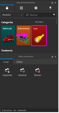 Allí nos dirigiremos al apartado de luz, donde encontraremos múltiples opciones de modelos de luces que podemos importar en nuestra escena.