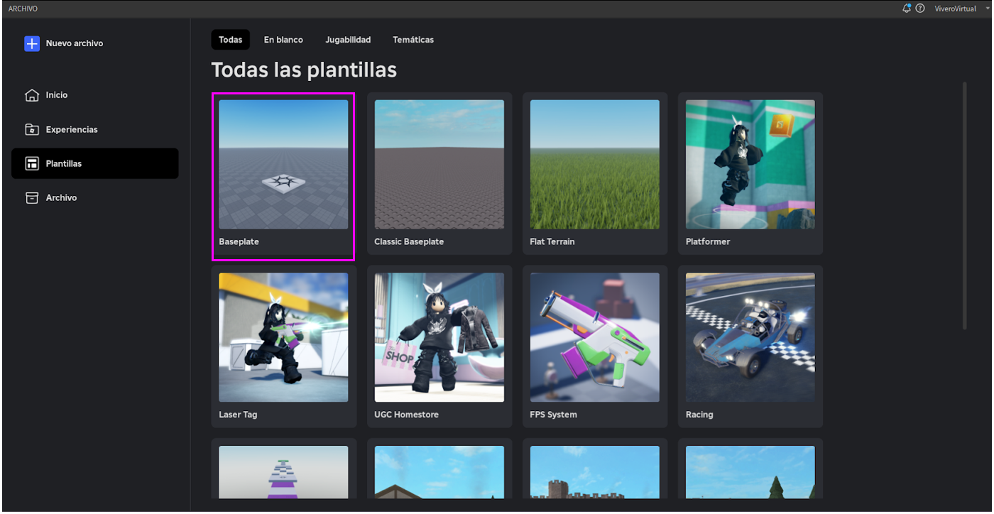 Ahora veremos cómo podremos crear un proyecto en Roblox Studio.