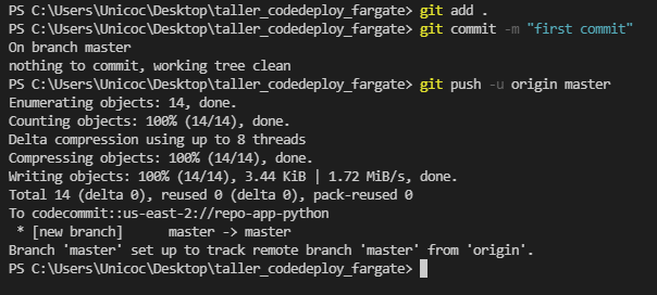 Prepare todos los archivos de la aplicación y realice un push de estos al repositorio de CodeCommit.